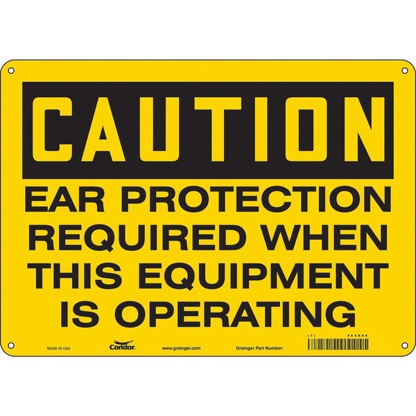 Safety Sign, Horizontal Rectangle, Number of Printed Sides 1, English, Sign Format Traditional OSHA, Sign Legend Ear Protection Required When This Equipment Is Operating, Sign Legend Background Color Yellow, Sign Legend Style Text