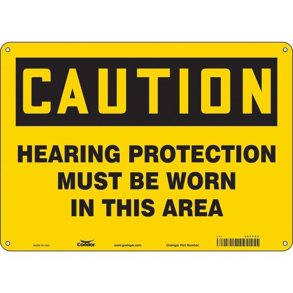 Safety Sign, Horizontal Rectangle, Number of Printed Sides 1, English, Sign Format Traditional OSHA, Sign Legend Hearing Protection Must Be Worn In This Area, Sign Legend Background Color Yellow, Sign Legend Style Text
