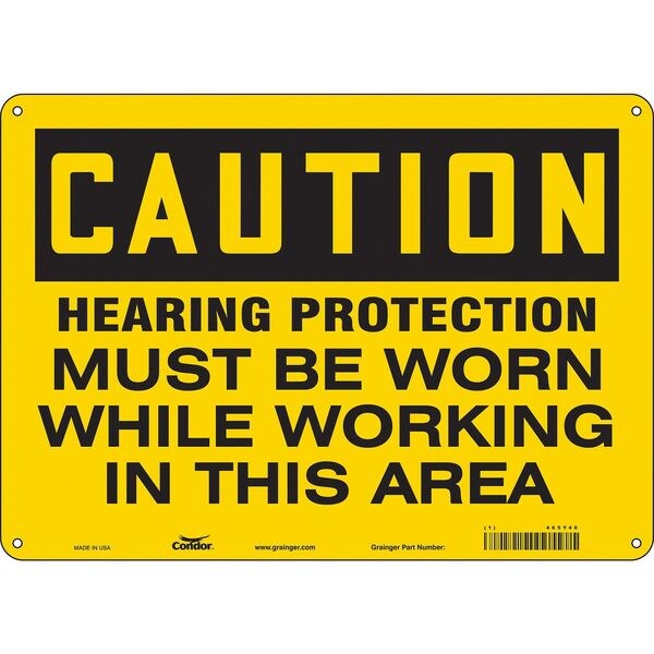 Safety Sign, Horizontal Rectangle, Number of Printed Sides 1, English, Sign Format Traditional OSHA, Sign Legend Hearing Protection Must Be Worn While Working In This Area, Sign Legend Background Color Yellow, Sign Legend Style Text