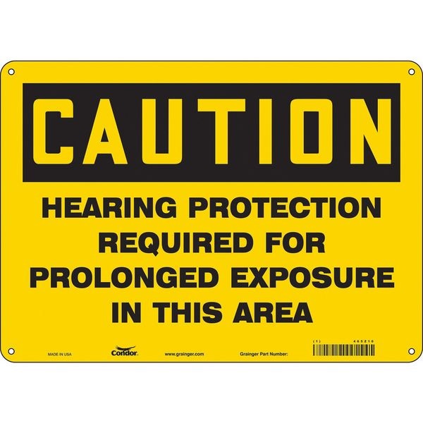 Safety Sign, Horizontal Rectangle, Number of Printed Sides 1, English, Sign Format Traditional OSHA, Sign Legend Hearing Protection Required For Prolonged Exposure In This Area, Sign Legend Background Color Yellow, Sign Legend Style Text