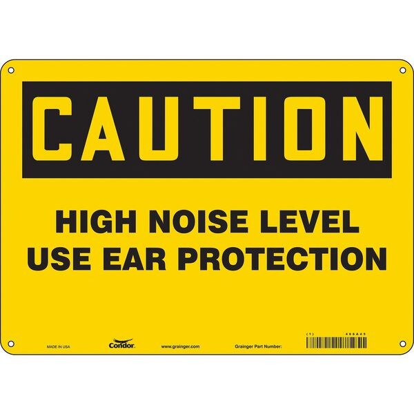 Safety Sign, Horizontal Rectangle, Number of Printed Sides 1, English, Sign Format Traditional OSHA, Sign Legend High Noise Level Use Ear Protection, Sign Legend Background Color Yellow, Sign Legend Style Text