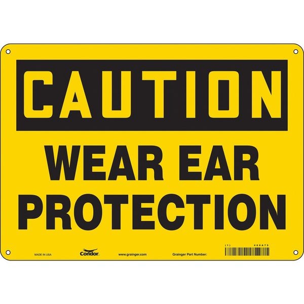 Safety Sign, Horizontal Rectangle, Number of Printed Sides 1, English, Sign Format Traditional OSHA, Sign Legend Wear Ear Protection, Sign Legend Background Color Yellow, Sign Legend Style Text