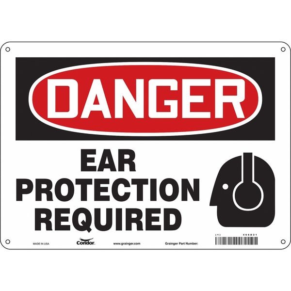 Safety Sign, Horizontal Rectangle, Number of Printed Sides 1, English, Sign Format Traditional OSHA, Sign Legend Ear Protection Required, Sign Legend Background Color White, Sign Legend Style Symbol and Text