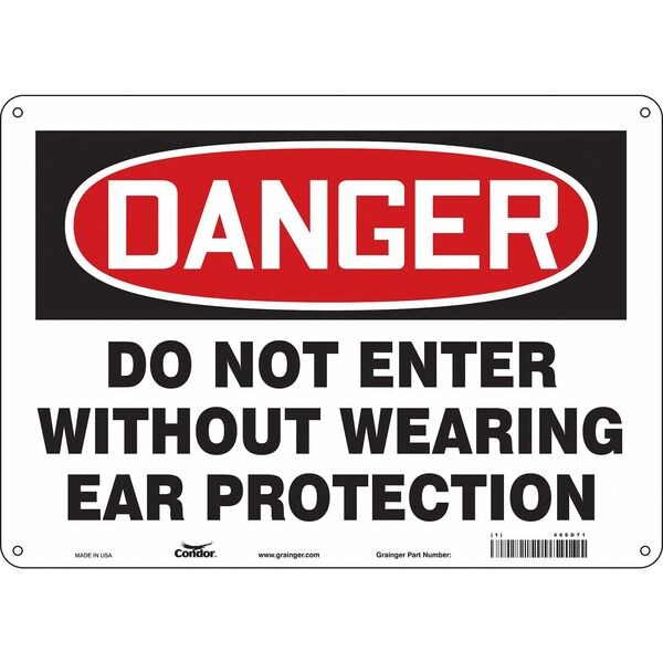 Safety Sign, Horizontal Rectangle, Number of Printed Sides 1, English, Sign Format Traditional OSHA, Sign Legend Do Not Enter Without Wearing Ear Protection, Sign Legend Background Color White, Sign Legend Style Text