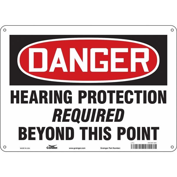 Safety Sign, Horizontal Rectangle, Number of Printed Sides 1, English, Sign Format Traditional OSHA, Sign Legend Hearing Protection Required Beyond This Point, Sign Legend Background Color White, Sign Legend Style Text