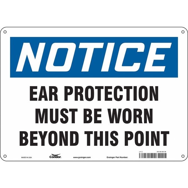 Safety Sign, Horizontal Rectangle, Number of Printed Sides 1, English, Sign Format Traditional OSHA, Sign Legend Ear Protection Must Be Worn Beyond This Point, Sign Legend Background Color White, Sign Legend Style Text