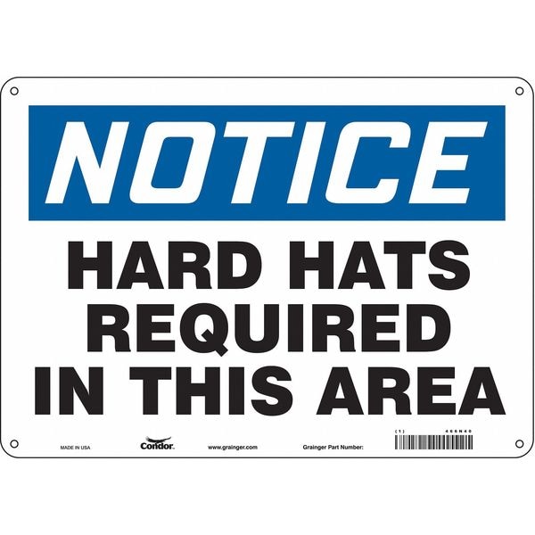 Safety Sign, Horizontal Rectangle, Number of Printed Sides 1, English, Sign Format Traditional OSHA, Sign Legend Hard Hats Required In This Area, Sign Legend Background Color White, Sign Legend Style Text