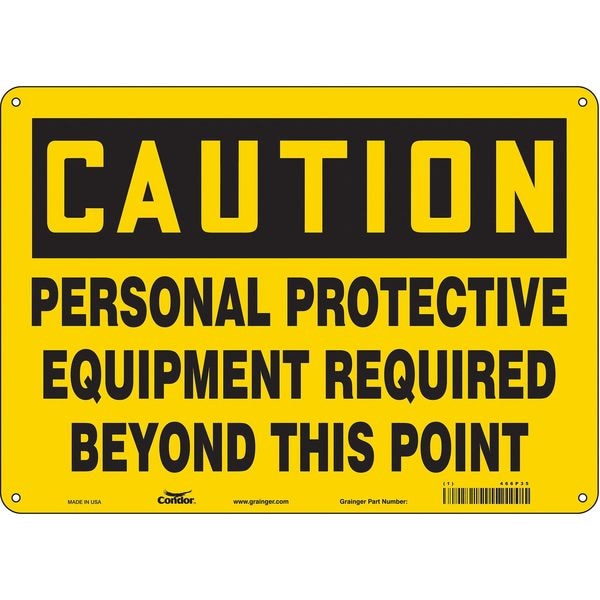 Safety Sign, Horizontal Rectangle, Number of Printed Sides 1, English, Sign Format Traditional OSHA, Sign Legend Personal Protective Equipment Required Beyond This Point, Sign Legend Background Color Yellow, Sign Legend Style Text