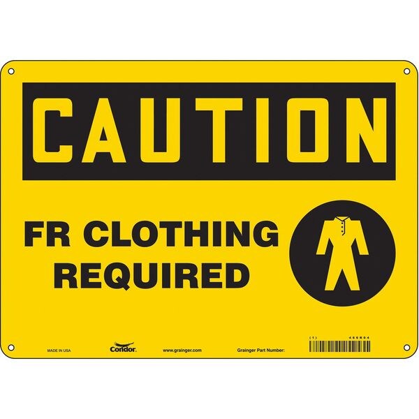 Safety Sign, Horizontal Rectangle, Number of Printed Sides 1, English, Sign Format Traditional OSHA, Sign Legend FR Clothing Required, Sign Legend Background Color Yellow, Sign Legend Style Symbol and Text