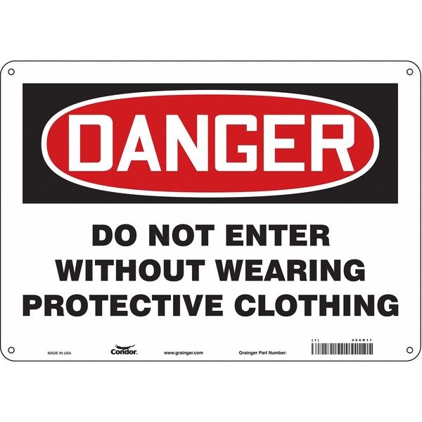 Safety Sign, Horizontal Rectangle, Number of Printed Sides 1, English, Sign Format Traditional OSHA, Sign Legend Do Not Enter Without Wearing Protective Clothing, Sign Legend Background Color White, Sign Legend Style Text