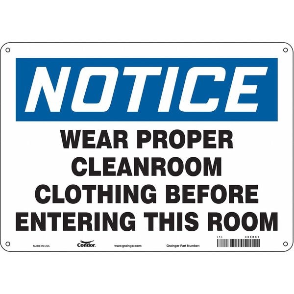 Safety Sign, Horizontal Rectangle, Number of Printed Sides 1, English, Sign Format Traditional OSHA, Sign Legend Wear Proper Cleanroom Clothing Before Entering This Room, Sign Legend Background Color White, Sign Legend Style Text