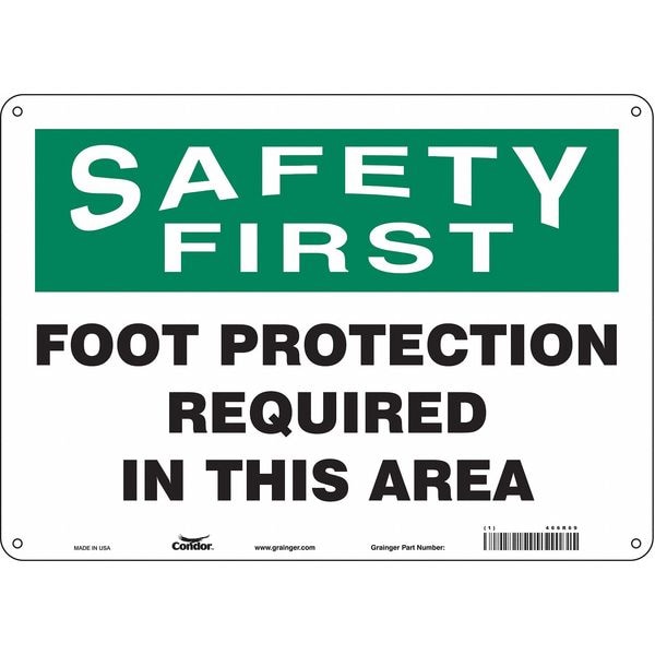 Safety Sign, Horizontal Rectangle, Number of Printed Sides 1, English, Sign Format Traditional OSHA, Sign Legend Foot Protection Required In This Area, Sign Legend Background Color White, Sign Legend Style Text