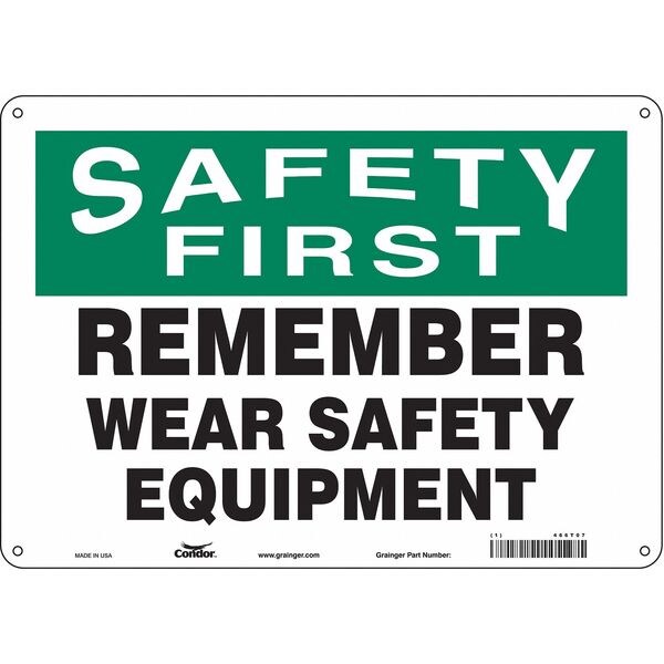 Safety Sign, Horizontal Rectangle, Number of Printed Sides 1, English, Sign Format Traditional OSHA, Sign Legend Remember Wear Safety Equipment, Sign Legend Background Color White, Sign Legend Style Text