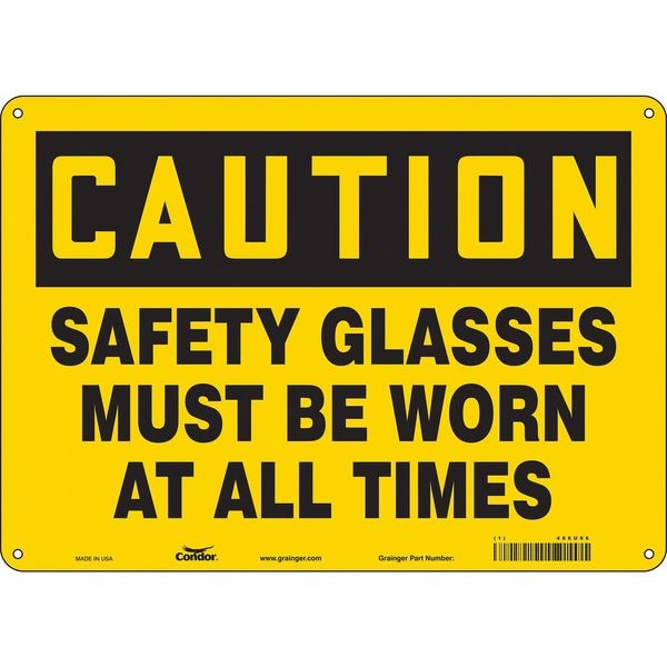 Safety Sign, Horizontal Rectangle, Number of Printed Sides 1, English, Sign Format Traditional OSHA, Sign Legend Safety Glasses Must Be Worn At All Times, Sign Legend Background Color Yellow, Sign Legend Style Text