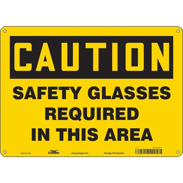 Safety Sign, Horizontal Rectangle, Number of Printed Sides 1, English, Sign Format Traditional OSHA, Sign Legend Safety Glasses Required In This Area, Sign Legend Background Color Yellow, Sign Legend Style Text