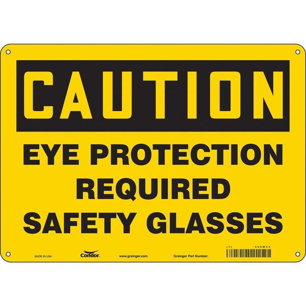 Safety Sign, Horizontal Rectangle, Number of Printed Sides 1, English, Sign Format Traditional OSHA, Sign Legend Eye Protection Required Safety Glasses, Sign Legend Background Color Yellow, Sign Legend Style Text