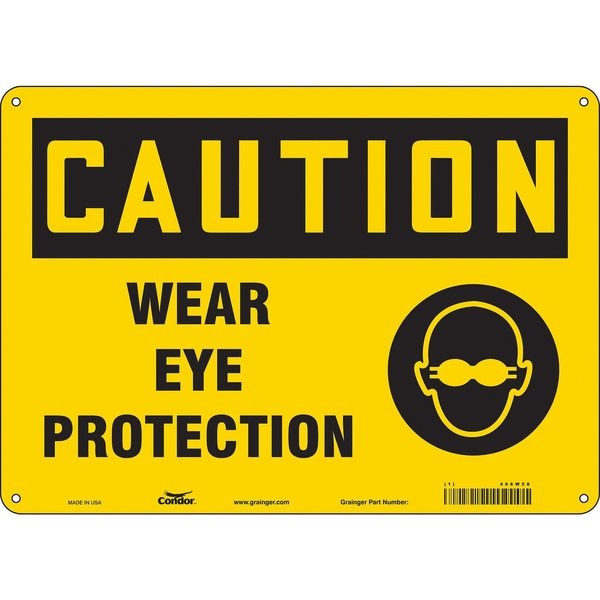 Safety Sign, Horizontal Rectangle, Number of Printed Sides 1, English, Sign Format Traditional OSHA, Sign Legend Wear Eye Protection, Sign Legend Background Color Yellow, Sign Legend Style Symbol and Text
