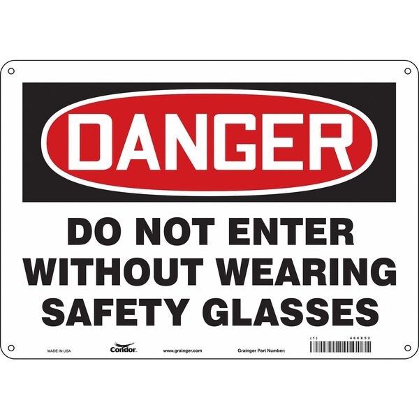 Safety Sign, Horizontal Rectangle, Number of Printed Sides 1, English, Sign Format Traditional OSHA, Sign Legend Do Not Enter Without Wearing Safety Glasses, Sign Legend Background Color White, Sign Legend Style Text