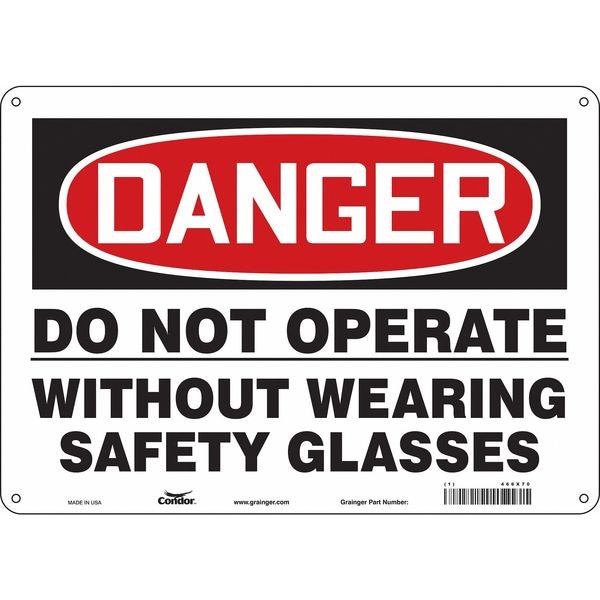 Safety Sign, Horizontal Rectangle, Number of Printed Sides 1, English, Sign Format Traditional OSHA, Sign Legend Do Not Operate Without Wearing Safety Glasses, Sign Legend Background Color White, Sign Legend Style Text