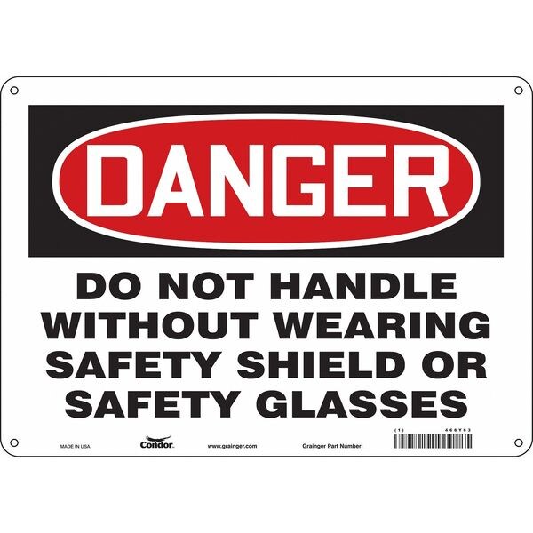 Safety Sign, Horizontal Rectangle, Number of Printed Sides 1, English, Sign Format Traditional OSHA, Sign Legend Do Not Handle Without Wearing Safety Shield Or Safety Glasses, Sign Legend Background Color White, Sign Legend Style Text