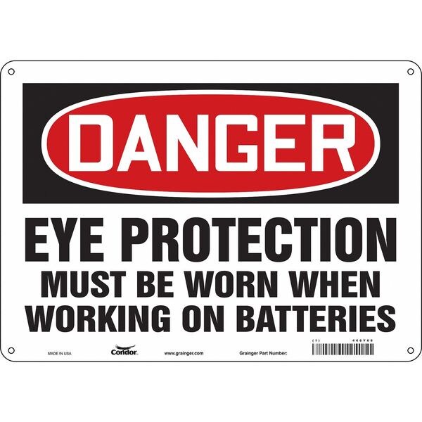 Safety Sign, Horizontal Rectangle, Number of Printed Sides 1, English, Sign Format Traditional OSHA, Sign Legend Eye Protection Must Be Worn When Working On Batteries, Sign Legend Background Color White, Sign Legend Style Text