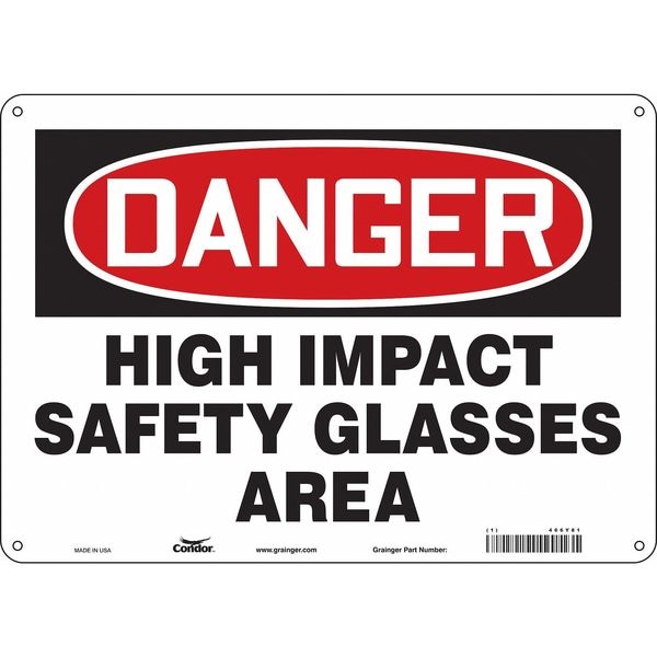 Safety Sign, Horizontal Rectangle, Number of Printed Sides 1, English, Sign Format Traditional OSHA, Sign Legend High Impact Safety Glasses Area, Sign Legend Background Color White, Sign Legend Style Text