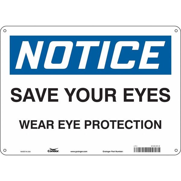 Safety Sign, Horizontal Rectangle, Number of Printed Sides 1, English, Sign Format Traditional OSHA, Sign Legend Save Your Eyes Wear Eye Protection, Sign Legend Background Color White, Sign Legend Style Text