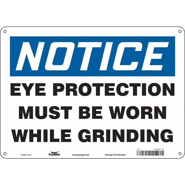 Safety Sign, Horizontal Rectangle, Number of Printed Sides 1, English, Sign Format Traditional OSHA, Sign Legend Eye Protection Must Be Worn When Grinding, Sign Legend Background Color White, Sign Legend Style Text