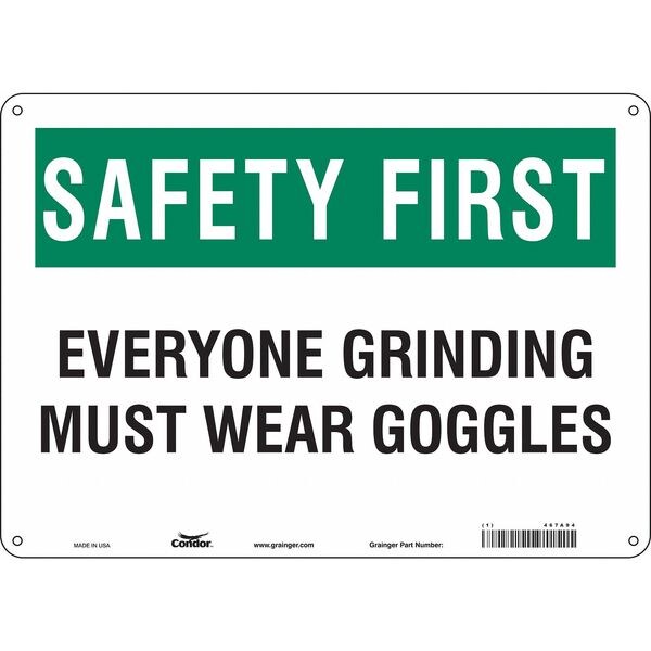 Safety Sign, Horizontal Rectangle, Number of Printed Sides 1, English, Sign Format Traditional OSHA, Sign Legend Everyone Grinding Must Wear Goggles, Sign Legend Background Color White, Sign Legend Style Text