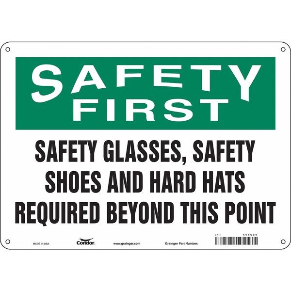 Safety Sign, Horizontal Rectangle, Number of Printed Sides 1, English, Sign Format Traditional OSHA, Sign Legend Safety Glasses, Safety Shoes, And Hard Hats Required Beyond This Point, Sign Legend Background Color White, Sign Legend Style Text
