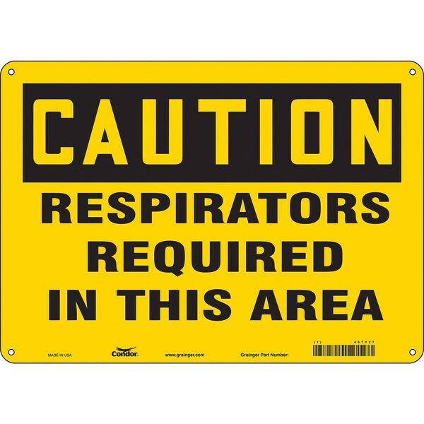Safety Sign, Horizontal Rectangle, Number of Printed Sides 1, English, Sign Format Traditional OSHA, Sign Legend Respirators Required In This Area, Sign Legend Background Color Yellow, Sign Legend Style Text