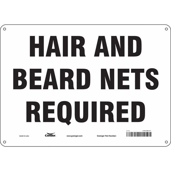Safety Sign, Horizontal Rectangle, Number of Printed Sides 1, English, Sign Legend Hair And Beard Nets Required, Sign Legend Background Color White, Sign Legend Style Text