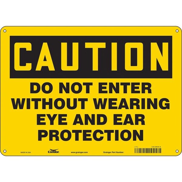 Safety Sign, Horizontal Rectangle, Number of Printed Sides 1, English, Sign Format Traditional OSHA, Sign Legend Do Not Enter Without Wearing Eye And Ear Protection, Sign Legend Background Color Yellow, Sign Legend Style Text