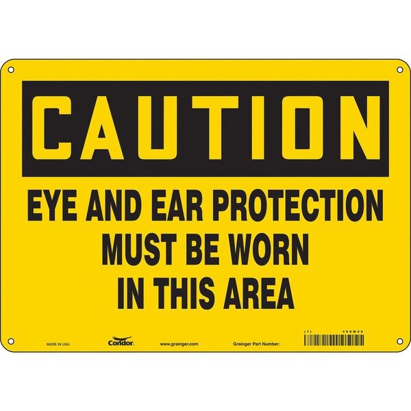 Safety Sign, Horizontal Rectangle, Number of Printed Sides 1, English, Sign Format Traditional OSHA, Sign Legend Eye And Ear Protection Must Be Worn In This Area, Sign Legend Background Color Yellow, Sign Legend Style Text