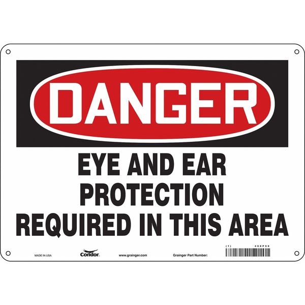 Safety Sign, Horizontal Rectangle, Number of Printed Sides 1, English, Sign Format Traditional OSHA, Sign Legend Eye And Ear Protection Required In This Area, Sign Legend Background Color White, Sign Legend Style Text