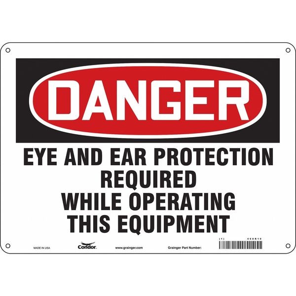 Safety Sign, Horizontal Rectangle, Number of Printed Sides 1, English, Sign Format Traditional OSHA, Sign Legend Eye And Ear Protection Required While Operating This Equipment, Sign Legend Background Color White, Sign Legend Style Text