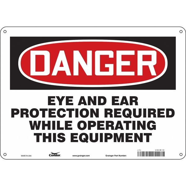 Safety Sign, Horizontal Rectangle, Number of Printed Sides 1, English, Sign Format Traditional OSHA, Sign Legend Eye And Ear Protection Required While Operating This Equipment, Sign Legend Background Color White, Sign Legend Style Text