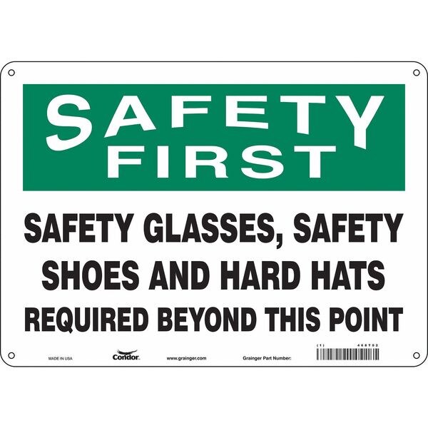 Safety Sign, Horizontal Rectangle, Number of Printed Sides 1, English, Sign Format Traditional OSHA, Sign Legend Safety Glasses Safety Shoes And Hard Hats Required Beyond This Point, Sign Legend Background Color White, Sign Legend Style Text