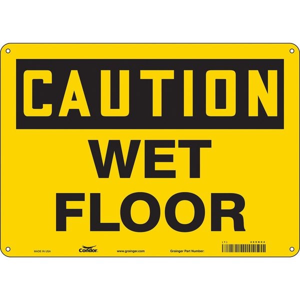 Safety Sign, Horizontal Rectangle, Number of Printed Sides 1, English, Sign Format Traditional OSHA, Sign Legend Wet Floor, Sign Legend Background Color Yellow, Sign Legend Style Text