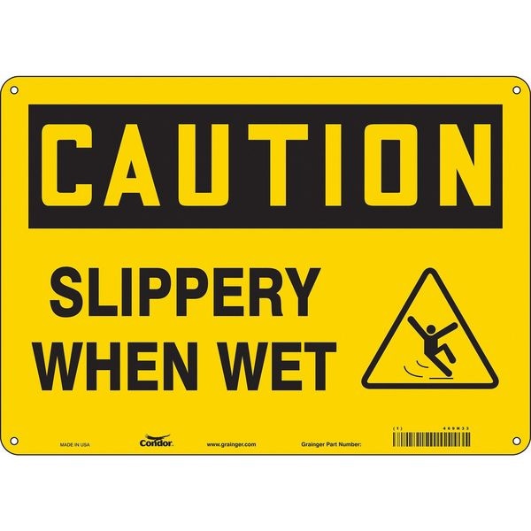 Safety Sign, Horizontal Rectangle, Number of Printed Sides 1, English, Sign Format Traditional OSHA, Sign Legend Slippery When Wet, Sign Legend Background Color Yellow, Sign Legend Style Symbol and Text