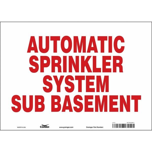 Safety Sign, Horizontal Rectangle, Number of Printed Sides 1, English, Sign Legend Automatic Sprinkler System Sub Basement, Sign Legend Background Color White, Sign Legend Style Text
