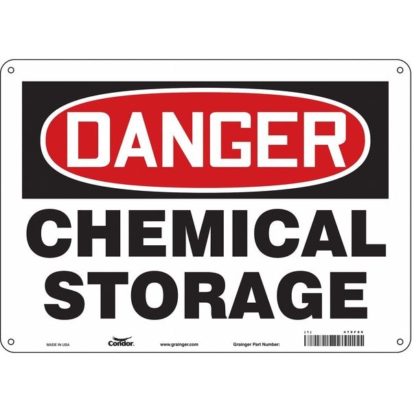 Safety Sign, Horizontal Rectangle, Number of Printed Sides 1, English, Sign Format Traditional OSHA, Sign Legend Chemical Storage, Sign Legend Background Color White, Sign Legend Style Text