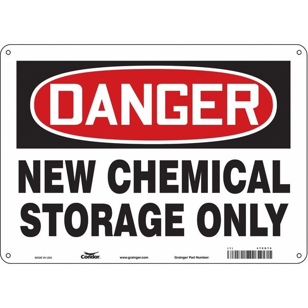 Safety Sign, Horizontal Rectangle, Number of Printed Sides 1, English, Sign Format Traditional OSHA, Sign Legend New Chemical Storage Only, Sign Legend Background Color White, Sign Legend Style Text