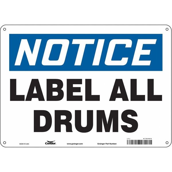 Safety Sign, Horizontal Rectangle, Number of Printed Sides 1, English, Sign Format Traditional OSHA, Sign Legend Label All Drums, Sign Legend Background Color White, Sign Legend Style Text