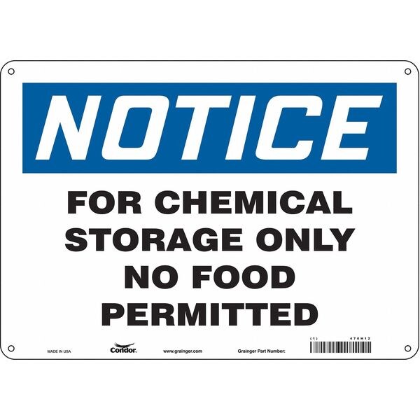 Safety Sign, Horizontal Rectangle, Number of Printed Sides 1, English, Sign Format Traditional OSHA, Sign Legend For Chemical Storage Only No Food Permitted, Sign Legend Background Color White, Sign Legend Style Text