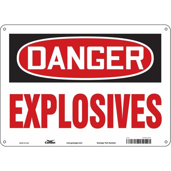 Safety Sign, Horizontal Rectangle, Number of Printed Sides 1, English, Sign Format Traditional OSHA, Sign Legend Explosives, Sign Legend Background Color White, Sign Legend Style Text