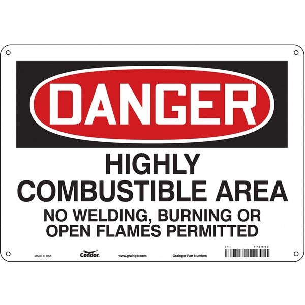 Safety Sign, Horizontal Rectangle, Number of Printed Sides 1, English, Sign Format Traditional OSHA, Sign Legend Highly Combustible Area No Welding, Burning Or Open Flames Permitted, Sign Legend Background Color White, Sign Legend Style Text
