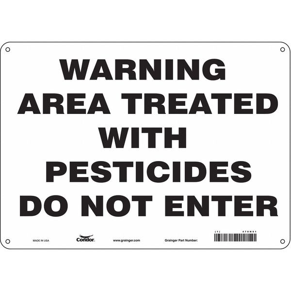 Safety Sign, Horizontal Rectangle, Number of Printed Sides 1, English, Sign Format Other Format, Sign Legend Warning Area Treated With Pesticides Do Not Enter, Sign Legend Background Color White, Sign Legend Style Text