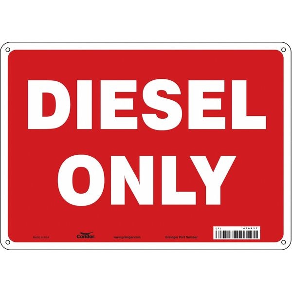 Safety Sign, Horizontal Rectangle, Number of Printed Sides 1, English, Sign Format Other Format, Sign Legend Diesel Only, Sign Legend Background Color Red, Sign Legend Style Text