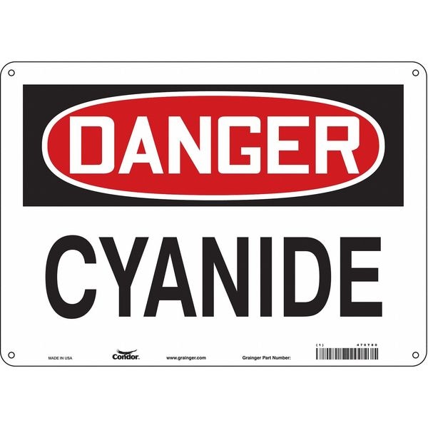 Safety Sign, Horizontal Rectangle, Number of Printed Sides 1, English, Sign Format Traditional OSHA, Sign Legend Cyanide, Sign Legend Background Color White, Sign Legend Style Text